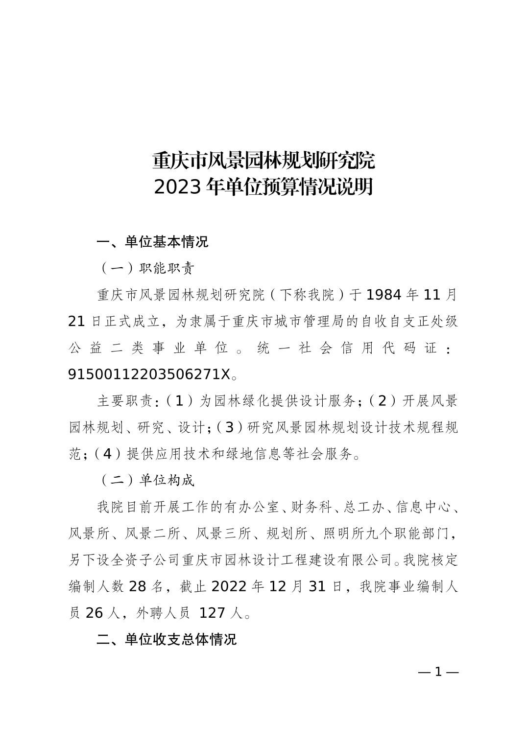 重庆市风景园林规划研究院2023年单位预算情况说明