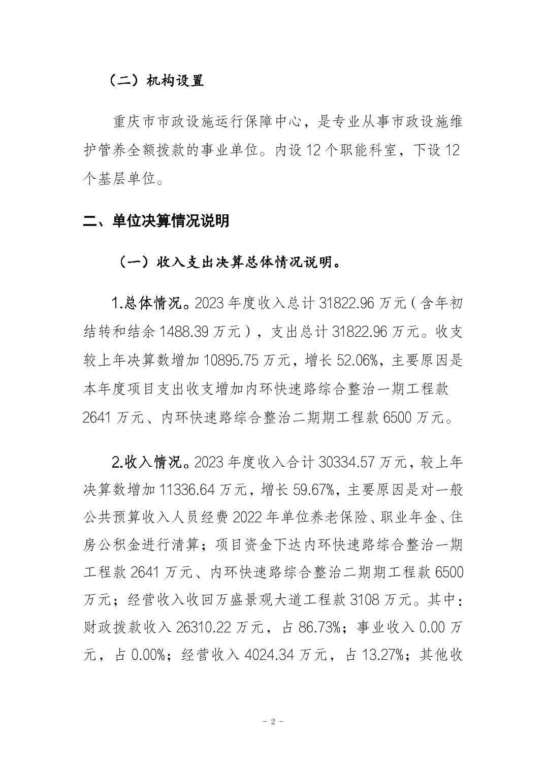 重庆市市政设施运行保障中心2023年度决算公开说明